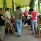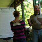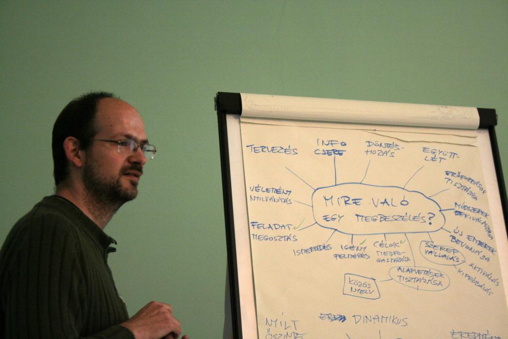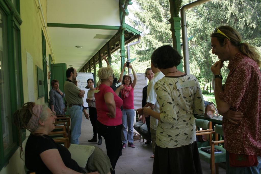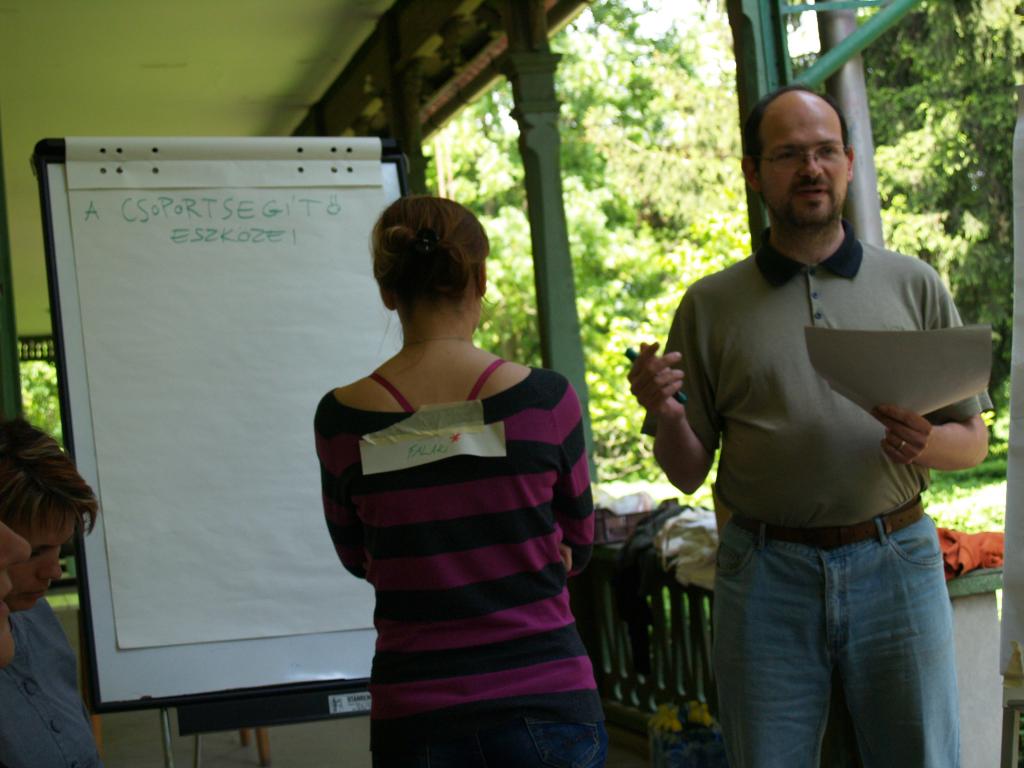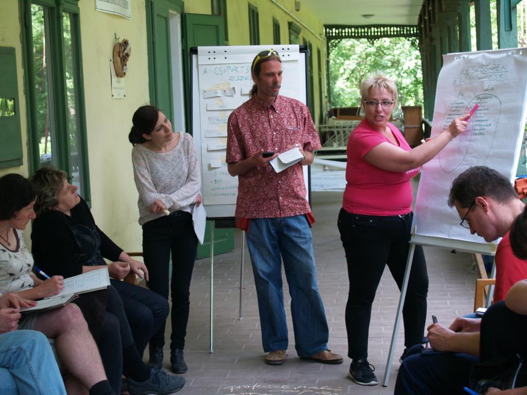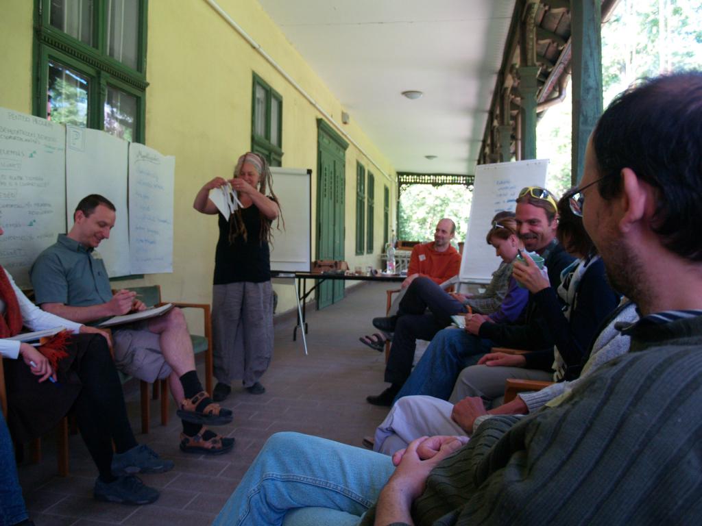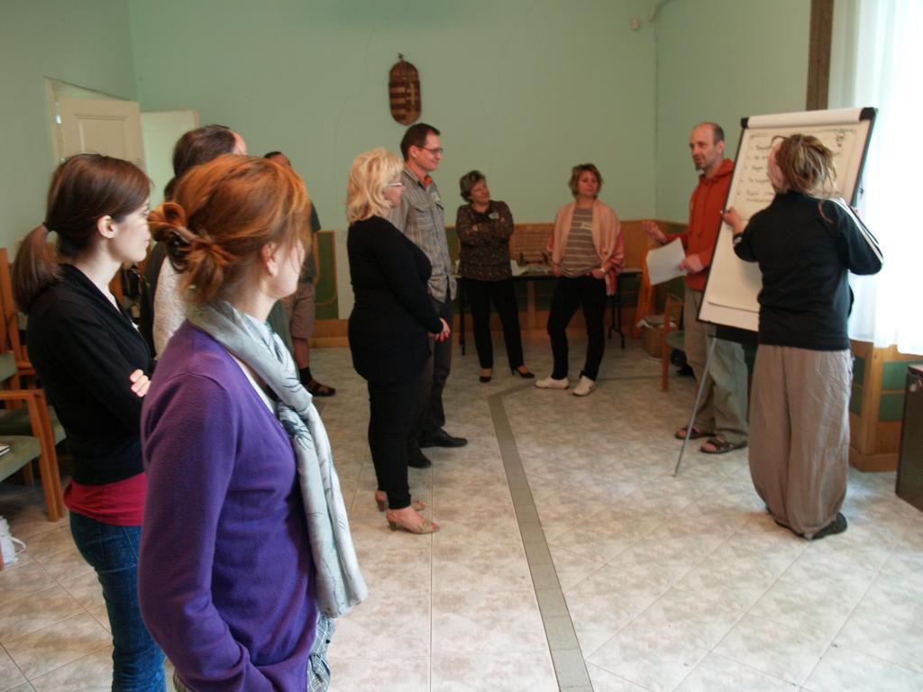 Van valami igazán fura légköre ennek, amit úgy hívunk facilitálás. A flipchart, a bluetech, a post it, a world café – ezek a fontos kis „kellékei” még mindig nem kaptak magyar nevet, vagy ha igen, nem használjuk őket. De nem csak ettől tájidegen. Maga a kultúra: hogy csoportban dolgozzunk, hogy ne a saját érdekeinket, hanem a csoportét helyezzük előtérbe, hogy a csoportban ne legyen vezető, de mégis hatékonyan működjön – még nem mindennapi errefelé. A Kisközösségek Átalakulásban program stábja (is) azon munkálkodik, hogy ez a működési módszer és gondolkodásmód szervesen beépüljön az életünkbe. A hétvégén ezért kétnapos képzést tartott a tréner-pár Tracey Wheatley és Ferenczi István a programban résztvevő közösségek érdeklődő tagjainak.