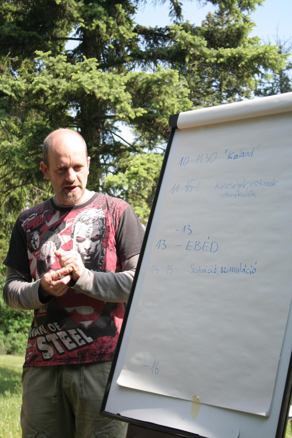 Bizony, előre tudta mindenki, nagy várakozás övezte, és persze izgalom is: mindenki átvehette a csoportsegítői szerep egy-egy szeletét vagy egészét előbb-utóbb. A résztvevők nagy része több-kevesebb tapasztalattal rendelkezett már a csoportsegítői feladatokról, de nyilván egy kis drukk azért járt a szerepléshez. A képzők pedig klasszul összeszedték a visszajelzéseket, s a magukét is hozzátéve adtak visszacsatolást a bátraknak. Azt szinte mondani sem kellene, hogy a támogató kommunikáció alap, úgyhogy a sikerültebb és kevésbé eredményes elemeket úgy sikerült megbeszélni, hogy senki ne érezze magát kellemetlenül. Sőt.