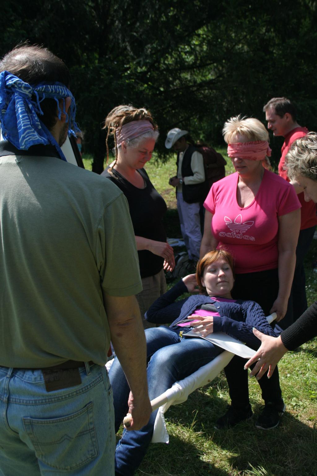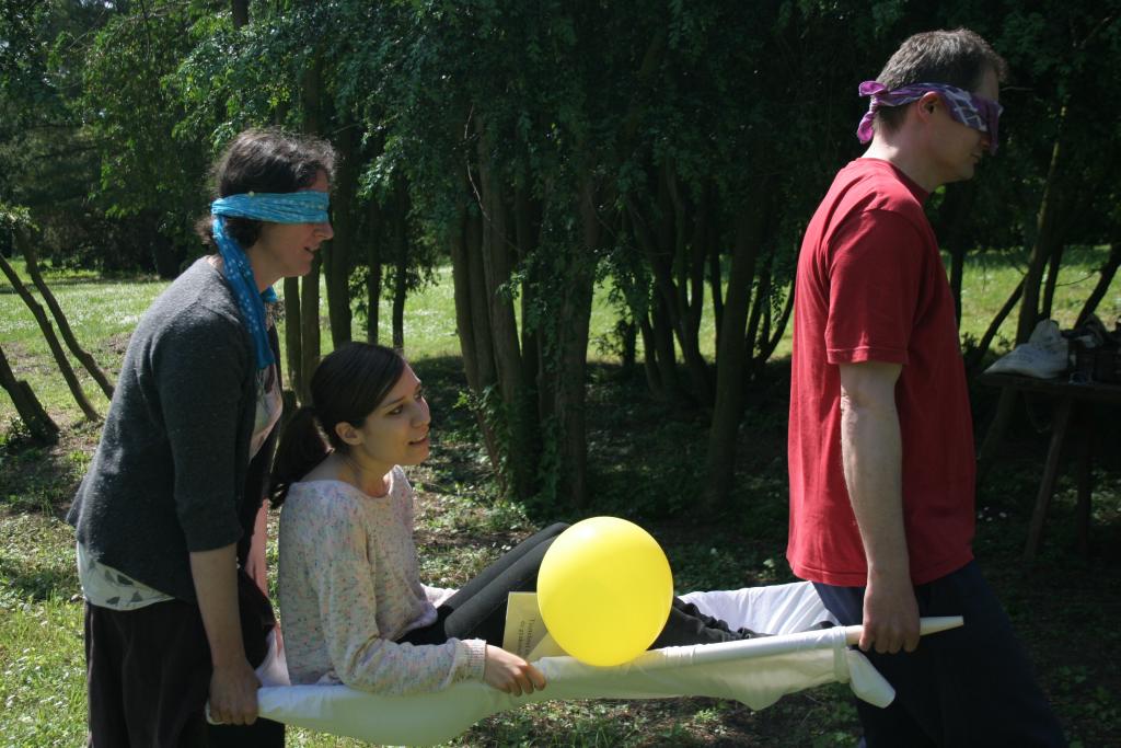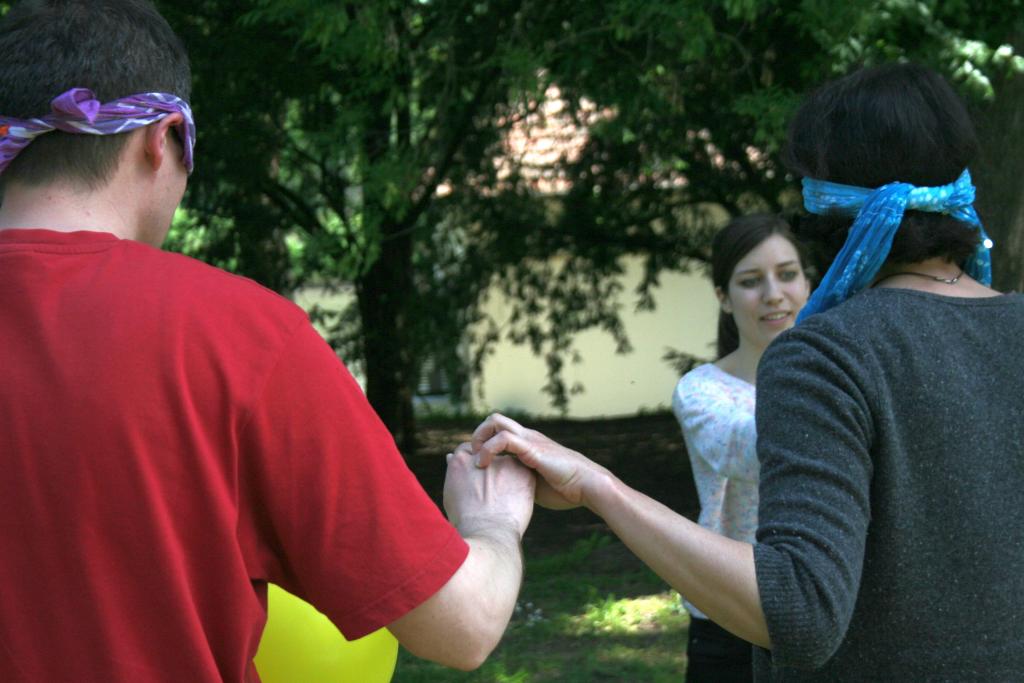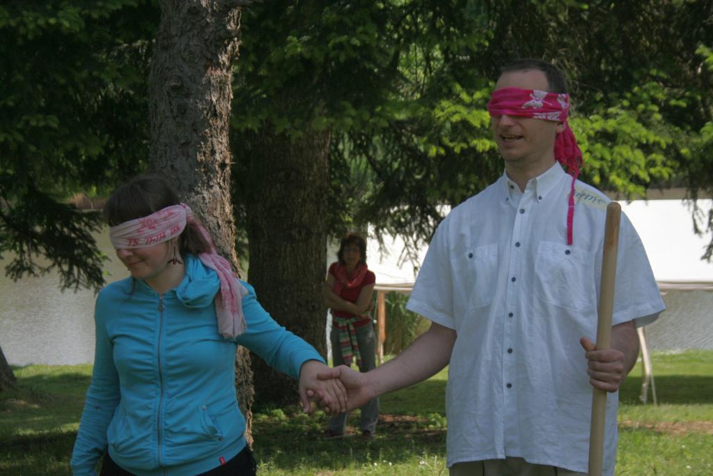 Háromfős csapatokra osztották magukat a résztvevők, akik közül kettő nem látott, de tudott beszélni, a harmadik pedig – bár a látása ép maradt, nagyon kevés szót tudott: mindössze igent és nemet, s mozgásában korlátozottként társai segítségére szorult. Ez egy olyan csapatjáték, ahol kommunikációs gátakat kell legyőzni, s amely a legenda szerint egy valós eseményen alapszik: szállodatűz volt egy konferencia helyszínén és onnan mentették ki az emberek így egymást. Ilyenkor valódi tétje van az együttműködésnek, hiszen fizikailag sem kockázat nélküli. A kérdés az volt: vajon tudnak-e bízni egymásban azok az emberek, akik egy napja találkoztak életükben először? Képesek-e kidolgozni egy olyan kommunikációs stratégiát, amelynek segítségével legyőzik a nyelvi gátakat és megoldják a feladatot? Annyit azért elárulunk, hogy sebesüléseket senki sem szerzett…