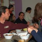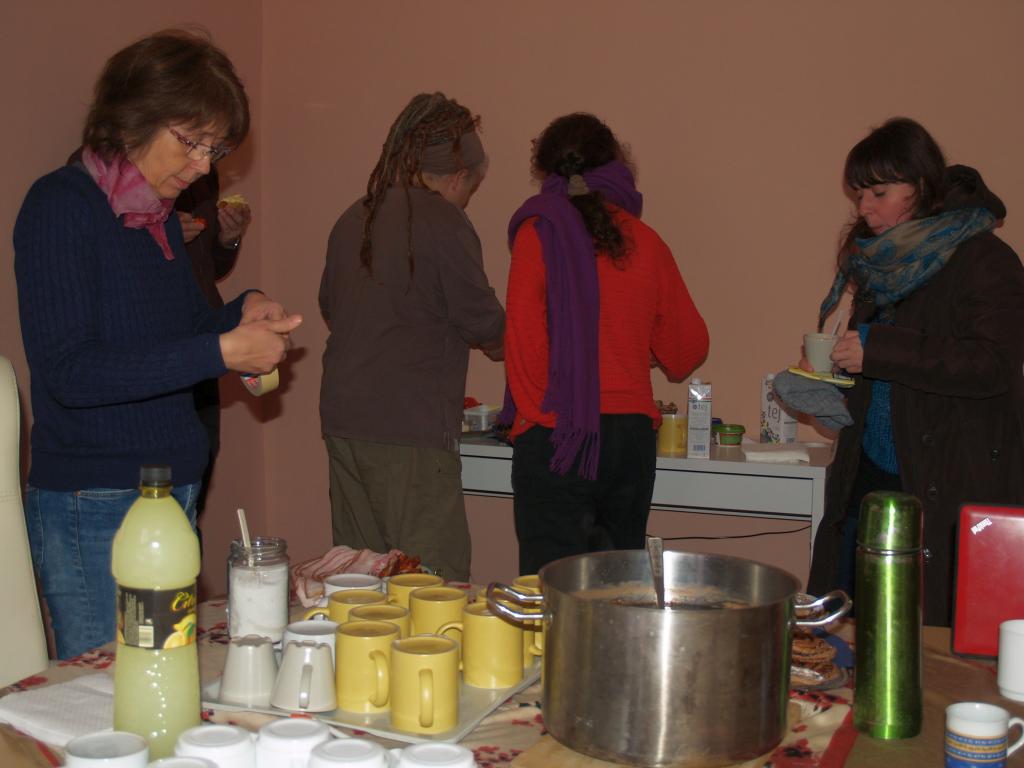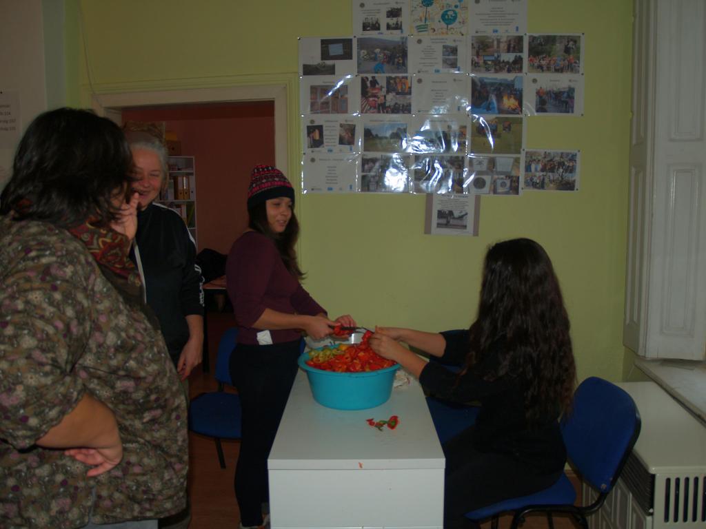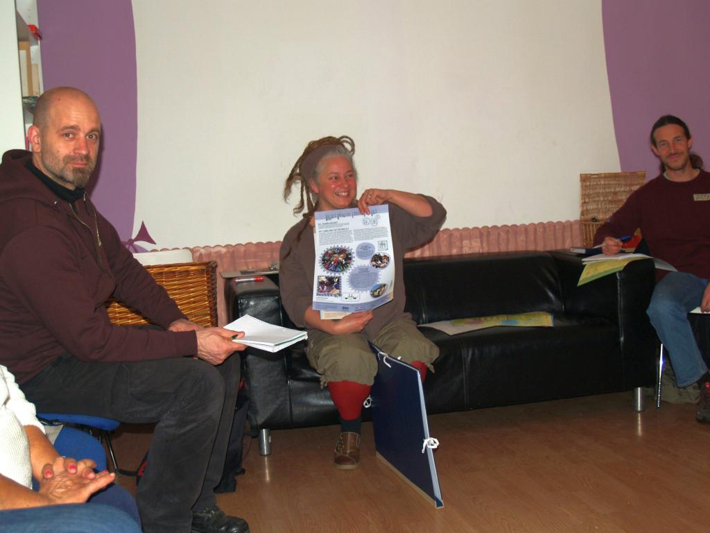 Képzéseink során fontos szempont, hogy mindig más közösséghez menjünk: így ők biztosítják a helyszínt, gondoskodnak az étkezésről és emellett megmutatják: milyen környezetben, milyen témák mentén ügyködnek. Ezek az alkalmak kiválóak arra, hogy mélyebben megismerjük a milliőt, amelyben munkálkodnak és a közösségek azon tagjait is, akik nem járnak a közös összejövetelekre. Most Pécs volt a helyszín és a Hősök tere munkacsoport a vendéglátóink. Izgultak nagyon, hogy szép legyen a ház (sokat készültek, még villanyt is szereltek), aztán hogy az étel is mindenki ínyére való legyen. Mivel hiszünk abban, hogy az asztalra kerülő étel komoly tényező, ezért a húsmentes menü a kívánatos, illetve mindig értékeljük, ha helyi termelőktől származó alapanyagból főznek. A pécsiek felelőse – a tőle megszokható igyekezettel – fedezte fel a termelői holmikat és a szombat esti beszélgetésben jót derültünk azon, ahogy előadta a kálváriáját.