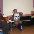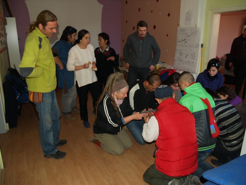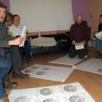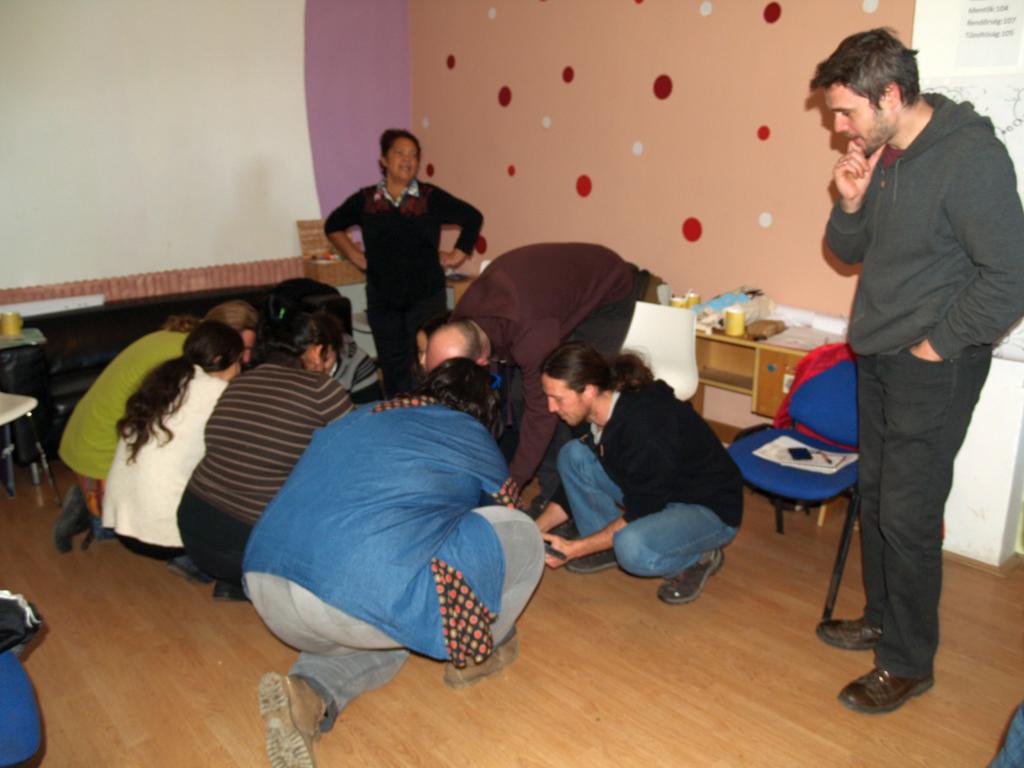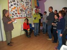 az első feladat az volt, hogy lemodellezzünk egy látogatást, így a közösségek egyik tagja fogadott „látogatókat” a közösségéhez, a csapat többi része pedig másokhoz ment látogatóba. Ehhez a feladathoz minden katalizátor hozott otthonról képeket, tárgyakat, plakátokat, bármit, ami megjelenítette a munkát, melyet végeznek, s a képzők egy kis segédletet – szempontrendszert adtak a látogatáshoz. Mit érdemes előtte végiggondolni, mit szerencsés közben tenni és utána – visszacsatolásként, illetve a tapasztalatokat hogyan adjuk át a közösségünk otthon maradt tagjainak. Egy hatékony látogatás kellékei.