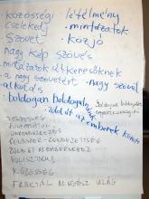 A folyamat közben két listát is elkezdtünk gyűjteni, az első egy parkoló pálya volt, ahol a fogalmaink (szakmai) tisztázási igénye szerepelt nagyobb részt. A másik listán pedig azt gyűjtöttük, hogy miért érdemes nekünk összekapcsolódni, összejárni, mit fogunk csinálni a találkozóinkon. Ha nagyon profánul akarom megfogalmazni: mi a közös érdekünk!? A végén ehhez azt is összegyűjtöttük, hogy jelenleg milyen eszközökkel (megjelenési alkalmak, online felületek) rendelkezünk. Tehát, nagyon egyszerűen leraktuk az együttműködésünk alapjait.