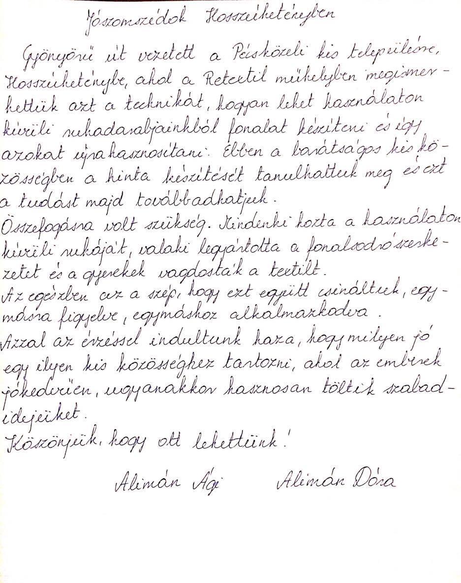 A műhely kiemelkedő értéke az a közös együttműködés volt, amely során tapasztalatot cseréltünk, beszélgettünk, élveztük egymás társaságát, és mindeközben gyönyörű használati tárgyak vagyis inkább „lényeknek” nevezhető csodaművek keletkeztek. A Gyalogút Alapítvány gyerekeknek szóló rendezvényein kiemelkedő szerepet kapnak majd! Ez a négy óra aktív közös munka mérhetetlen elégedettséggel és erővel ajándékozott minket. Még sok ilyen élményt kívánok magunknak!