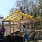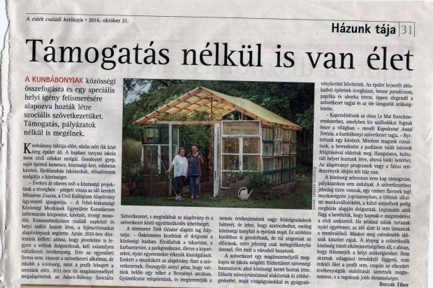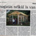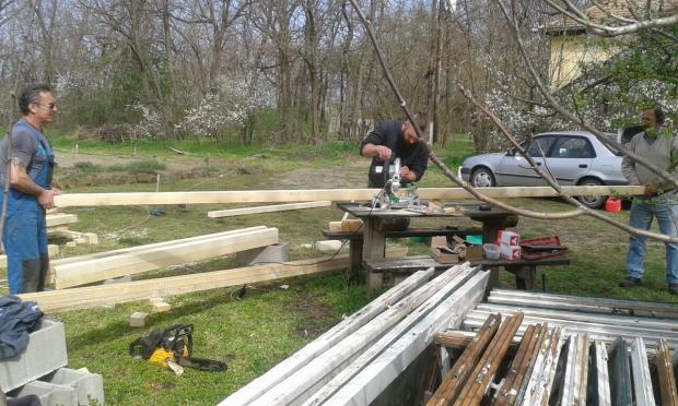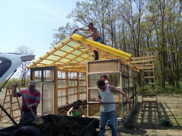 Üvegház bontott ablakokból A kunbábonyi közösségi kertben egy üvegház építése a Civil Kollégium kibontott régi ablakainak felhasználásával. Cél: A közösségi kertbe a palánták egy részének előállítása. Paprika, paradicsom, uborka termelése, a szabadföldi termesztés mellett. Az üvegházban reményeink szerint előbb fordul termőre a zöldségféle, mint a szabadföldben, így hamarabb jutunk friss zöldséghez. Lépések: Az üvegház megtervezése. Anyagbeszerzés. Ablakok kiválogatása. Alapozás. Az alapra az üvegház megépítése. Az üvegház betelepítése palántákkal ill. magokkal. Folyamatos gondozás és majd betakarítás. Eredmények: Elkészült az üvegház terve. Elnyertük a Kisközösségek Átalakulóban program támogatását. Beszereztük az alaphoz az építőanyagot saját forrásból. Megépítettük az alapot közösen saját erőforrásaink felhasználásával. Kiválogattuk az ablakokat. Megépítettük közösen az üvegház favázát. Elkészült az üvegház. Tanácsok: A közösség rendelkezik erőforrásokkal: a tagok erőforrásai és a közösség ereje. Ezeket hasznosítani lehet minden közösséget érintő, közösségi célú terv megvalósítása során. Először ehhez kell nyúlni és csak a meglévők kiegészítéseként külső forrást bevonni, ha szükség van rá. Kezdeményezők: A szociális szövetkezetünk tagjai Kunbábonyban, Kunszentmiklóson, Kunadacson élnek. Évtizede ismerjük egymást. Sok közösségi tevékenység áll mögöttünk. Döntéshozatalunk demokratikus, a tagok értik és tudják mit jelent a közösség és mit jelent a szociális szövetkezet. Sok önkéntes munkát is végzünk, de több tagunknak is van kiegészítő jövedelme a szövetkezet révén. A szövetkezetünk 4 éve üzemelteti a Civil Kollégiumot Kunbábonyban. A közösségi kertünket 4. éve műveljük közösen. Honlapotok, facebook oldalatok, blogotok címe:: https://www.facebook.com/groups/disznotor/Kontakt személy: Garamszegi BalázsHelyszín: Kunbábony Kunbábony 37/2 Kunszentmiklós, 6090 Magyarország E-mail cím: garamszegibalazs@gmail.com Telefon: 06 30 2513737 47° 1' 7.8096" N, 19° 13' 17.1804" E See map: Google térképek HU Támogatók: Kisközösségek Átalakulóban programTémák: közösségi élelmiszertermelésközösségi kertEgyéb témák: újrahasznosításCímkék: üvegház A hozzászóláshoz regisztráció és bejelentkezés szükséges